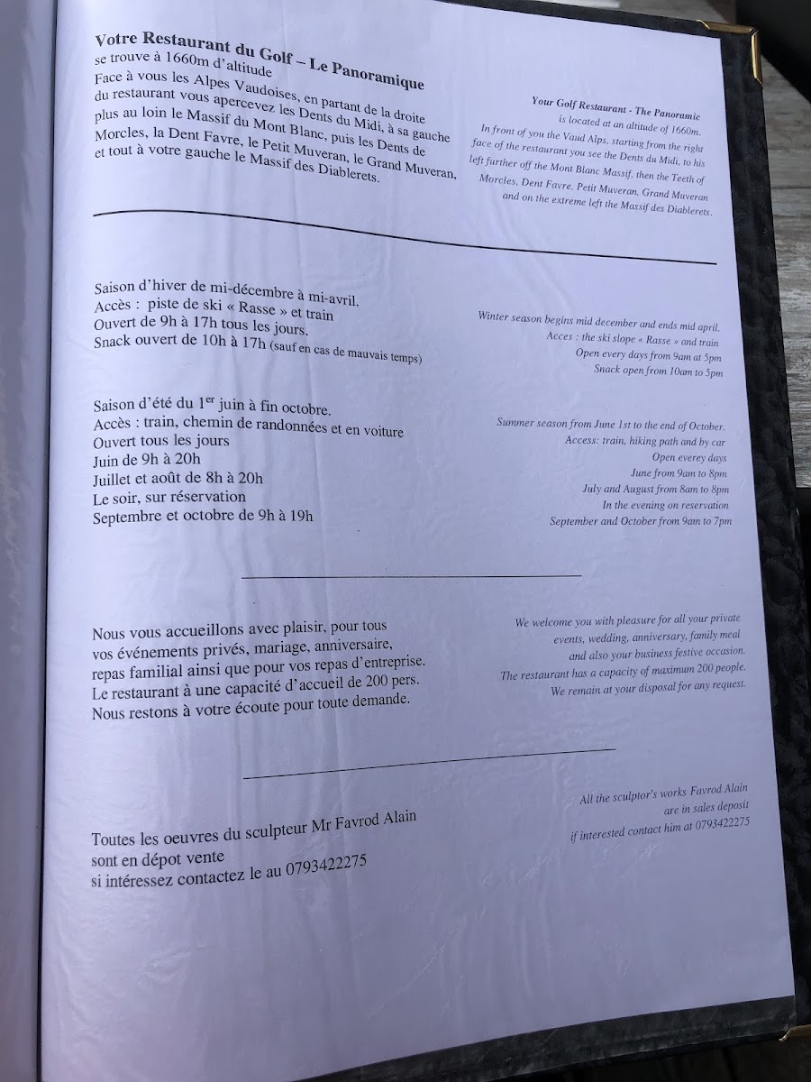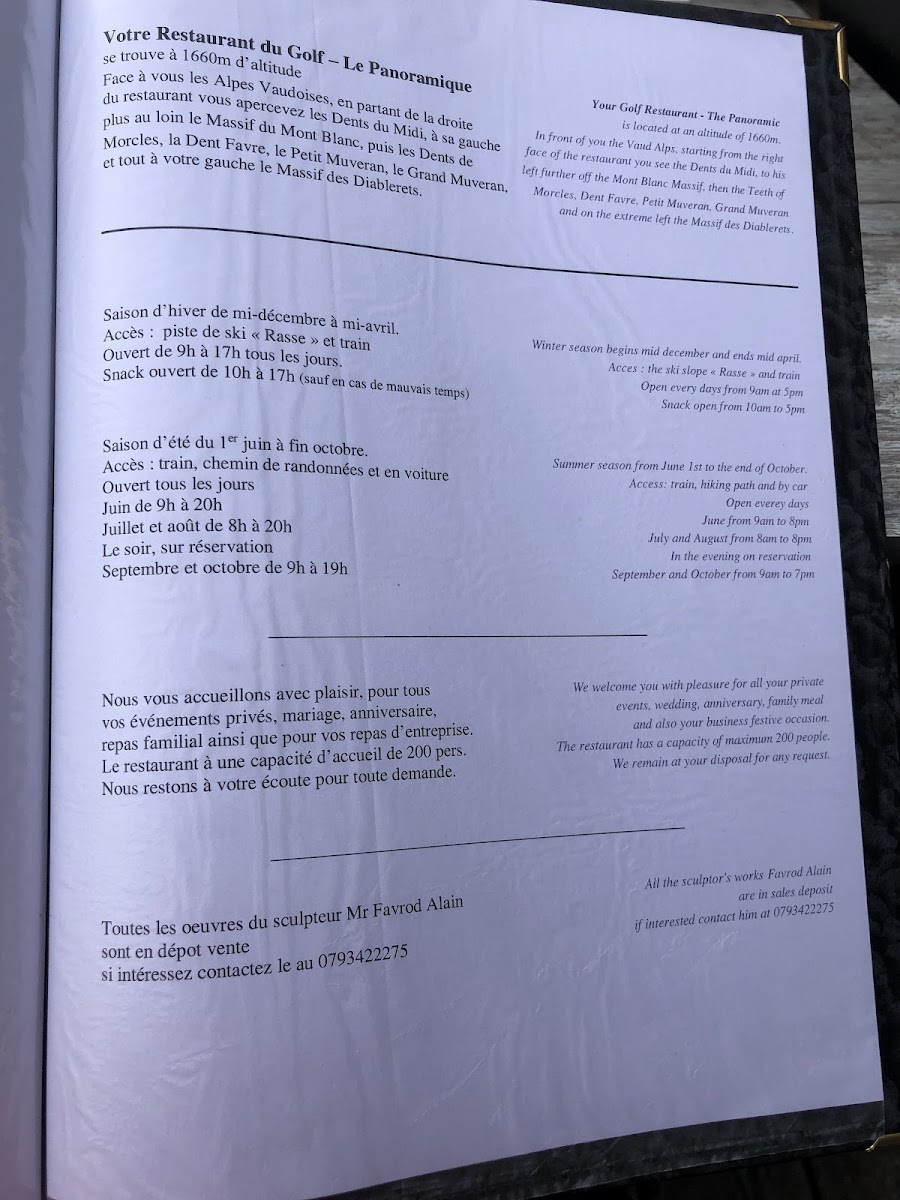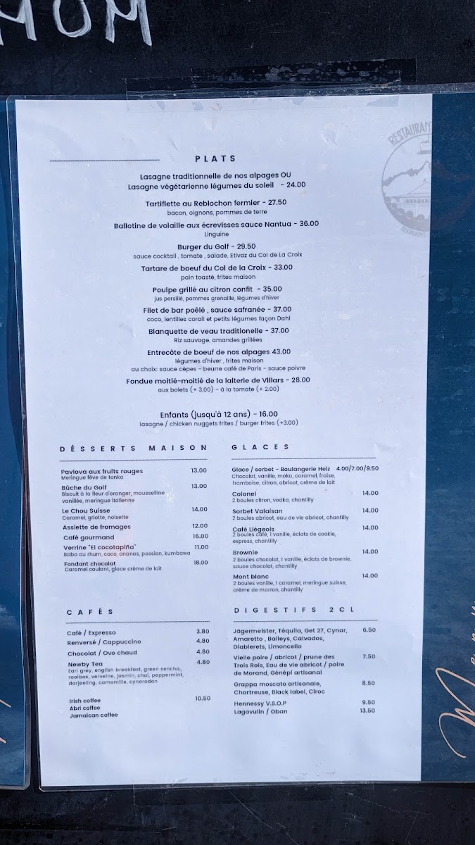 With its prime location at Route du Golf 12, Case postal 81, 1884 Villars-sur-Ollon, Switzerland, Restaurant Du Golf - Villars-Sur-Ollon Menu perfectly complements the stunning views of the surrounding Alps. Each dish is thoughtfully prepared, ensuring a memorable dining experience.